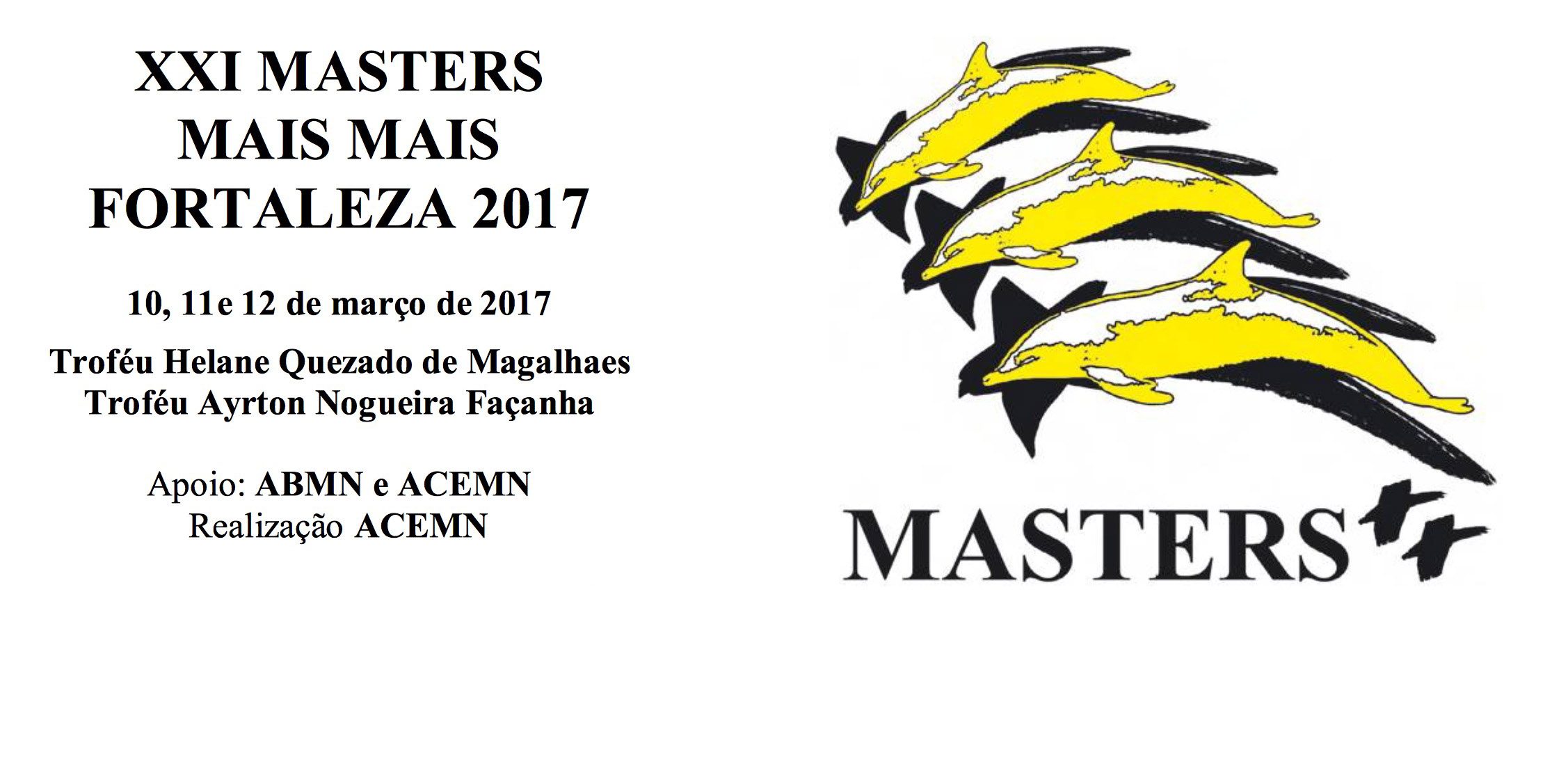 O tradicional Campeonato Masters Mais Mais (reservado apenas para atletas com 50 anos ou mais) chega em sua 21a. edição em 2017 e será realizada na piscina de 25 metros do Círculo Militar de Fortaleza, no Ceará, de 10 a 12 de março.
